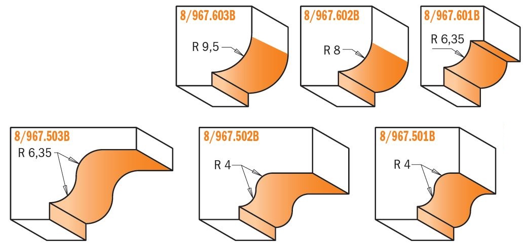 Frezy te pozwalają na uzyskanie eleganckich kształtów za pomocą Twojej frezarki.