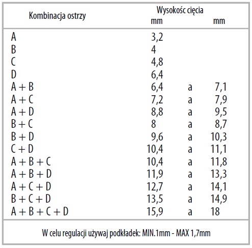 Zobacz listę poniżej przedstawiającą możliwości łączenia poszczególnych grubości ostrzy - kliknij tutaj.