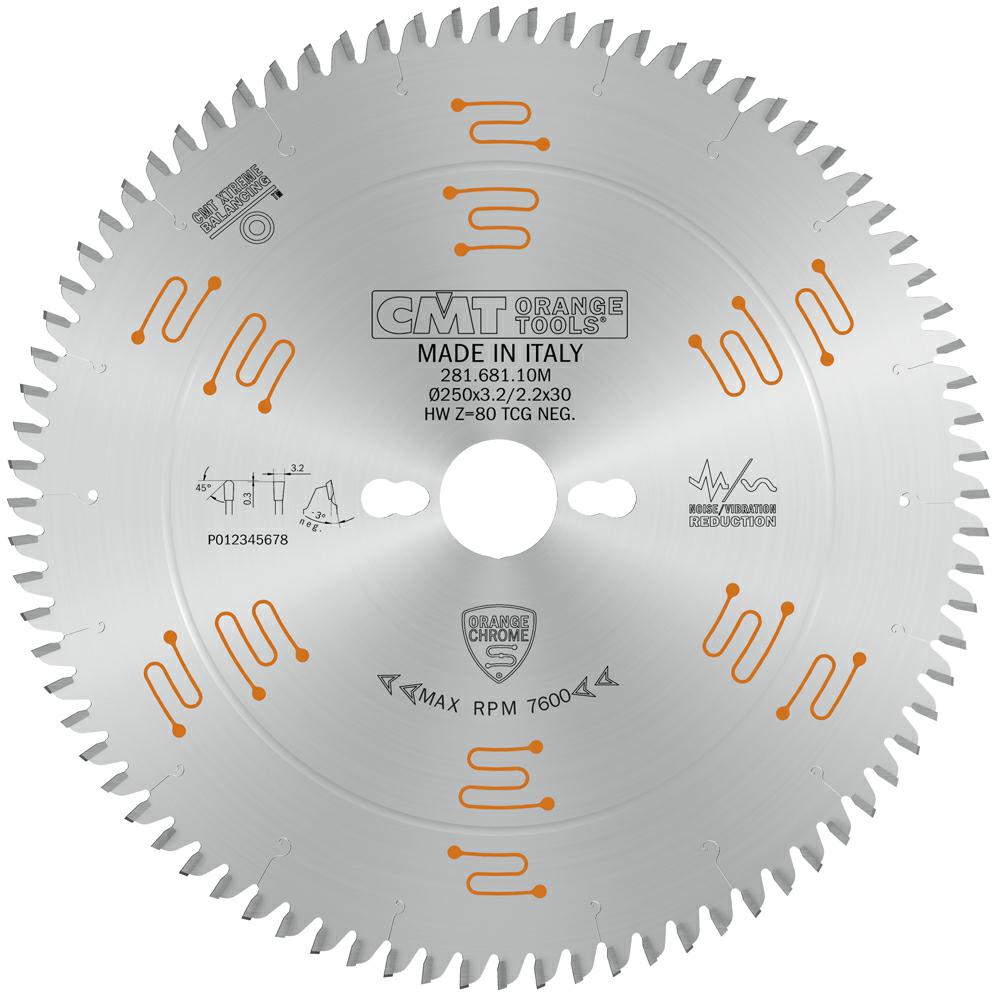 CIRCULAR SAW BLADE CHROME HW 250X3.2/2.2X30 Z80 TCG-3°NEG
